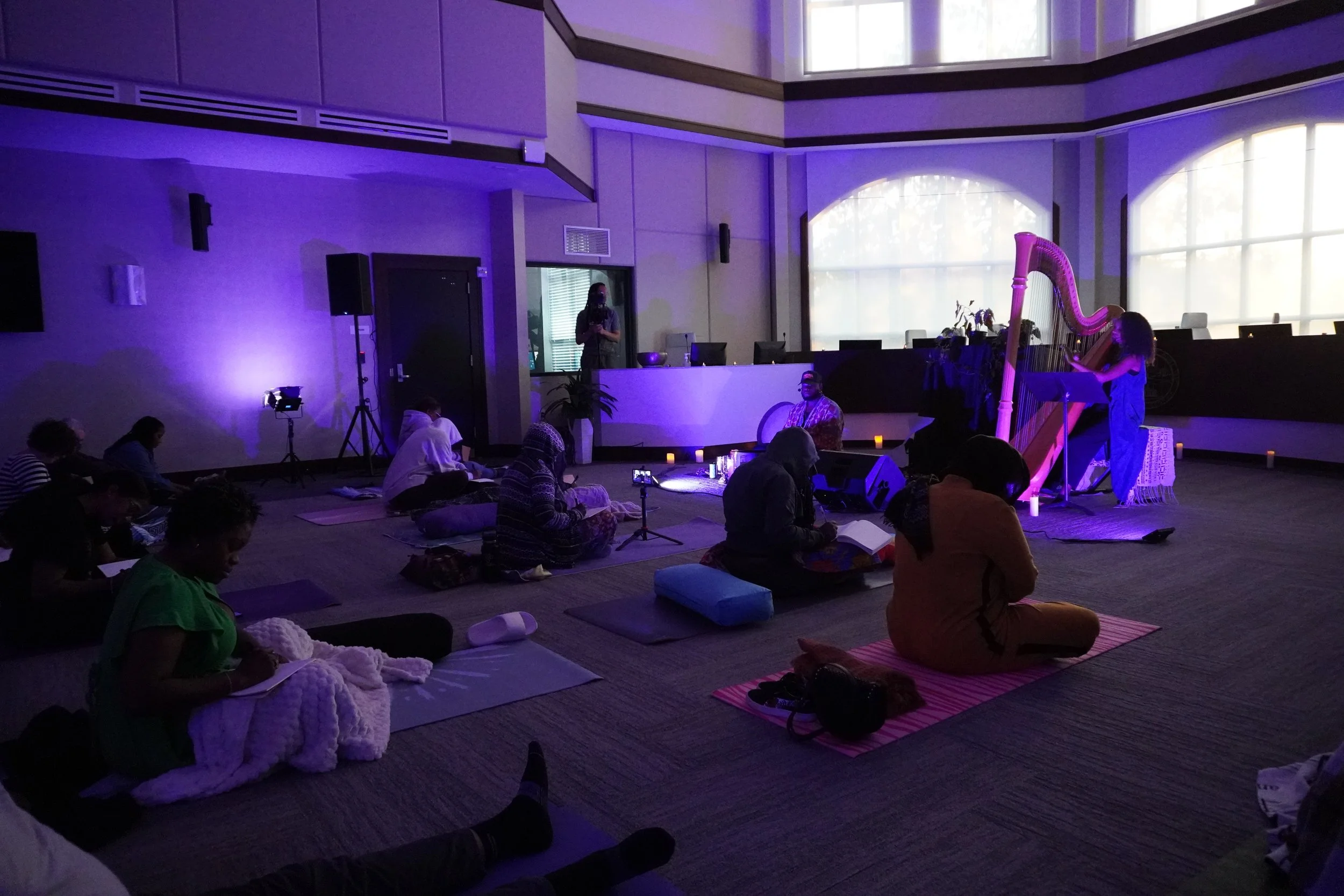 Angelica co-facilitated a harp-centered guided meditation at the Brooklyn Museum's First Saturday event, attended by over 6,000 participants. Partnering with Chelsea Jackson Roberts, a leading Peloton yoga and meditation instructor, Angelica provided transformative live harp music throughout the session which included mindful movement, guided meditation, and a harp sound bath. This event was sponsored by Lululemon.